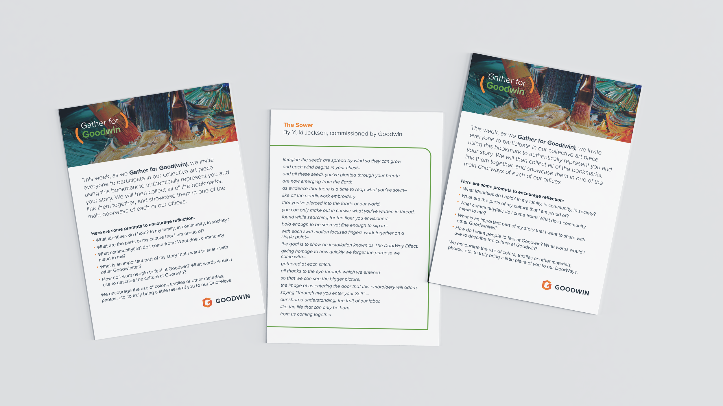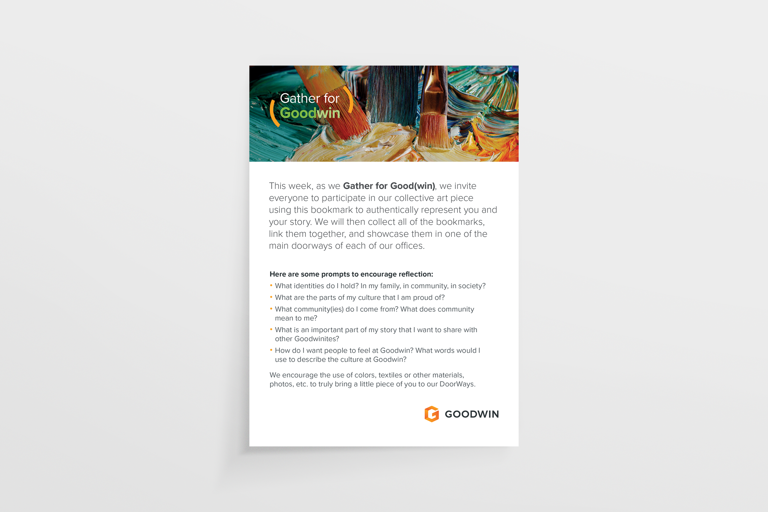 Developed a brand identity for an internal Goodwin LLP event—a week-long celebration recognizing the firm’s partners. Contributed to the creation of a visual lockup and sourced a series of vibrant images to be applied across various collateral, including the internal website, Zoom backgrounds, email communications, and printed materials.